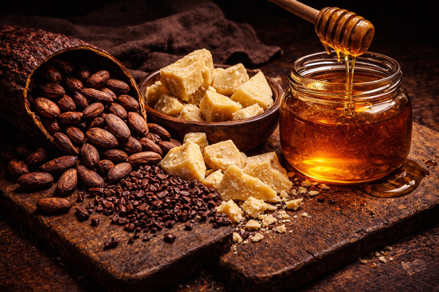 We keep it simple on purpose. Just three ingredients go into our dark chocolate, and each one earns its place.