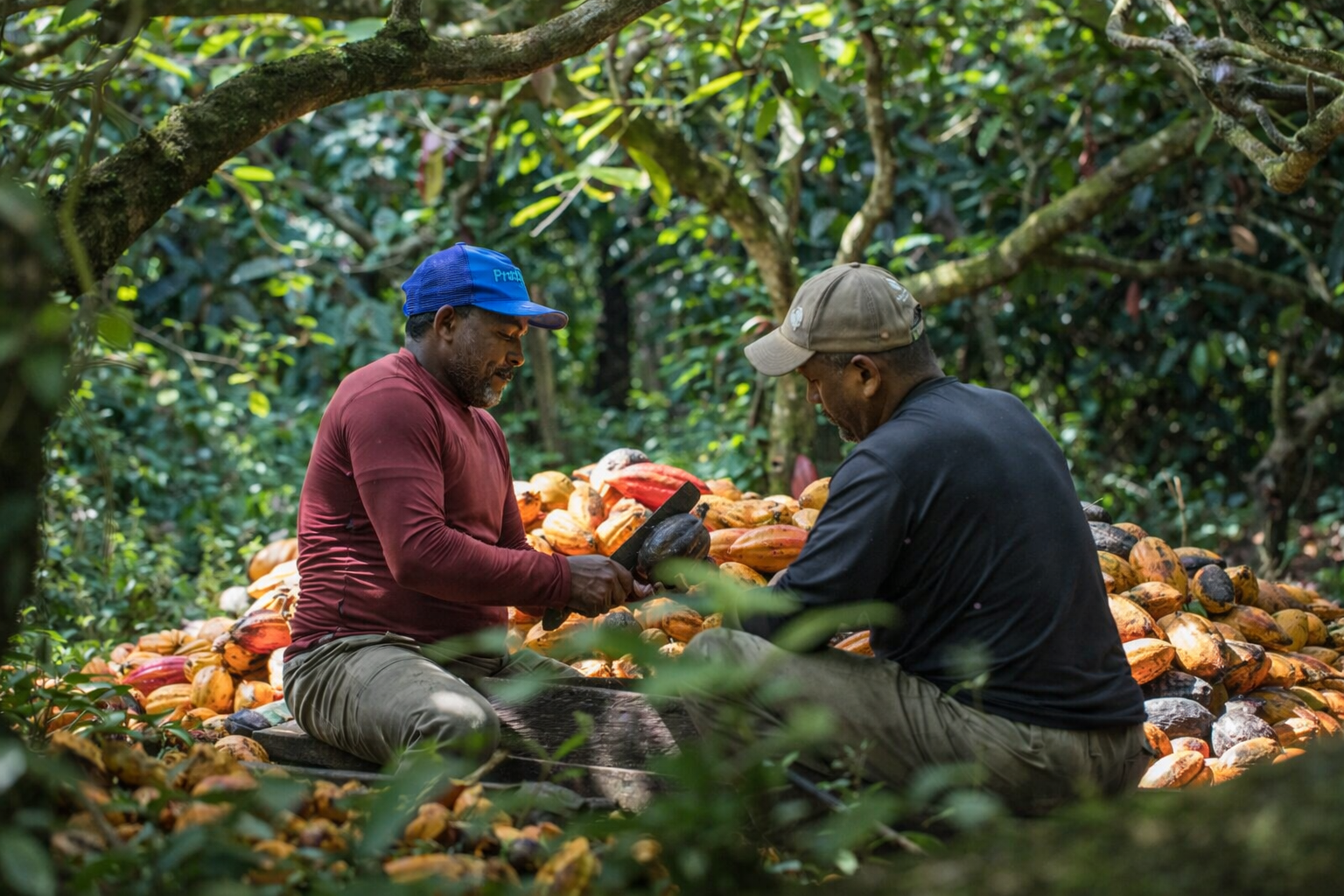 Chocolate begins at origin. The soil, the climate, and the people behind each harvest shape the flavour long before we ever touch it. Every bar starts with cacao we’ve chosen for its character and the relationships behind it